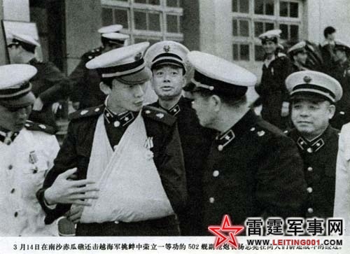 陈:当时我们有预案,假如越南飞机来,我们就对空射击,100炮、37炮、25炮,都可以对空,但是命中率肯定不如对海,毕竟飞机速度快得多,但也可以打得中。531由于经费和人力缺乏,当时并没有装备“红旗”-61对空导弹。556的对海导弹“上游”-1号也没有装,当时HQ505高速向海上逃窜,我就命令556发射导弹把它打掉,结果556报告:“没有装弹”。当时那种情况下,生气也没有用了,只能追上去用火炮打,如果带了导弹,它当时重伤进水,再来一枚导弹肯定就沉了。