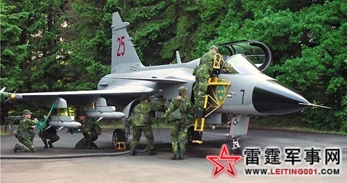 在乡间公路的转角处,地勤人员迅速的为JAS-39挂载武器。
